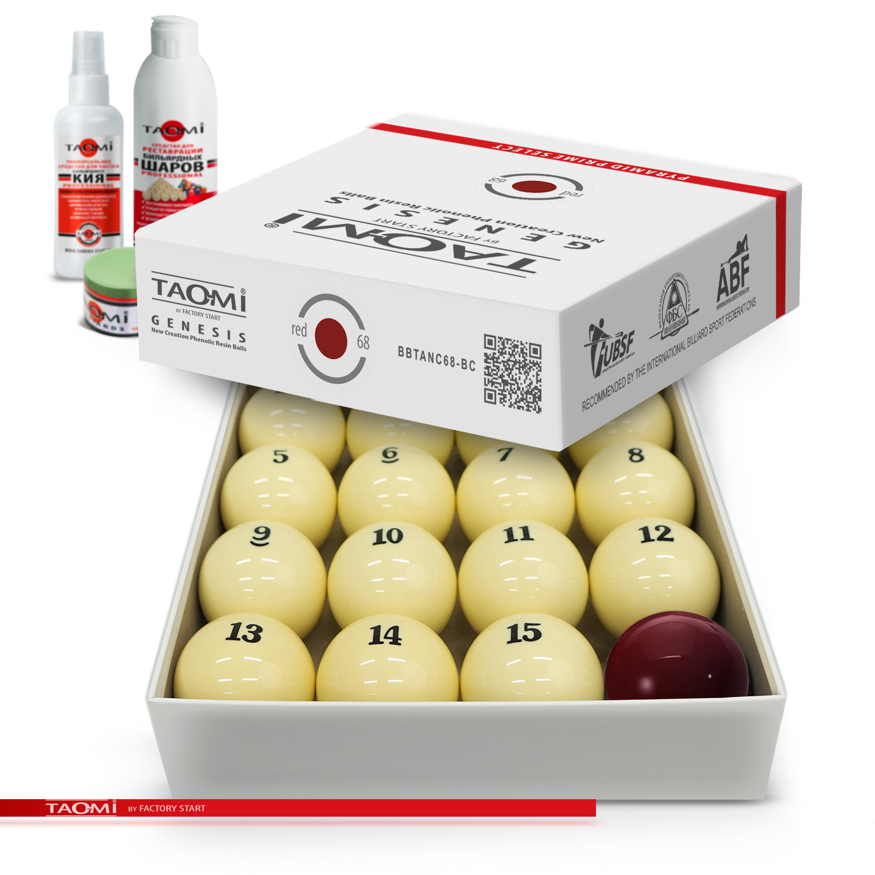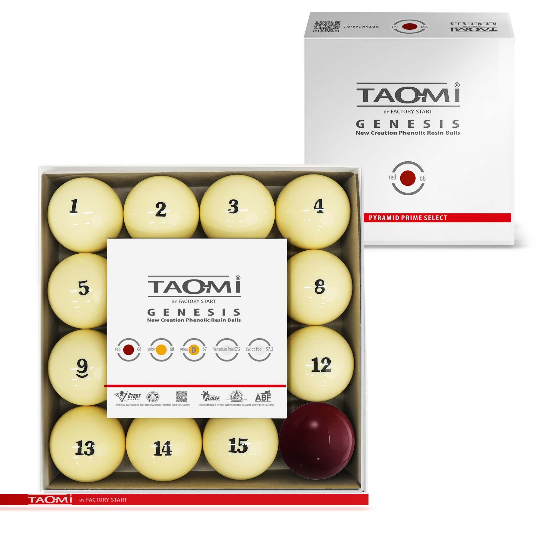 Шары TAO-MI GENESIS 68 мм – эталон точности и долговечности для игры в русскую пирамиду. Продукт нового поколения собственного бренда Фабрики «Старт», изготовленный по запатентованной технологии.Набор шаров из высококачественной фенольной смолы предлагает лучшее соотношение цены и качества для игроков любого уровня. Благодаря передовой технологии производства, включающей многоступенчатую полировку, каждый шар имеет строгий допуск по диаметру (68 мм), единый стандарт веса (разброс 1-2 г) и идеальную сферичность для абсолютного контроля над игрой.