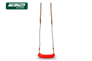 Пластиковое сиденье для качели "лодочка" красное. Яркие цвета придают изделию стильный внешний вид. Длина тканных веревок легко регулируется.Кольца и узлы изготовлены из оцинкованной стали.