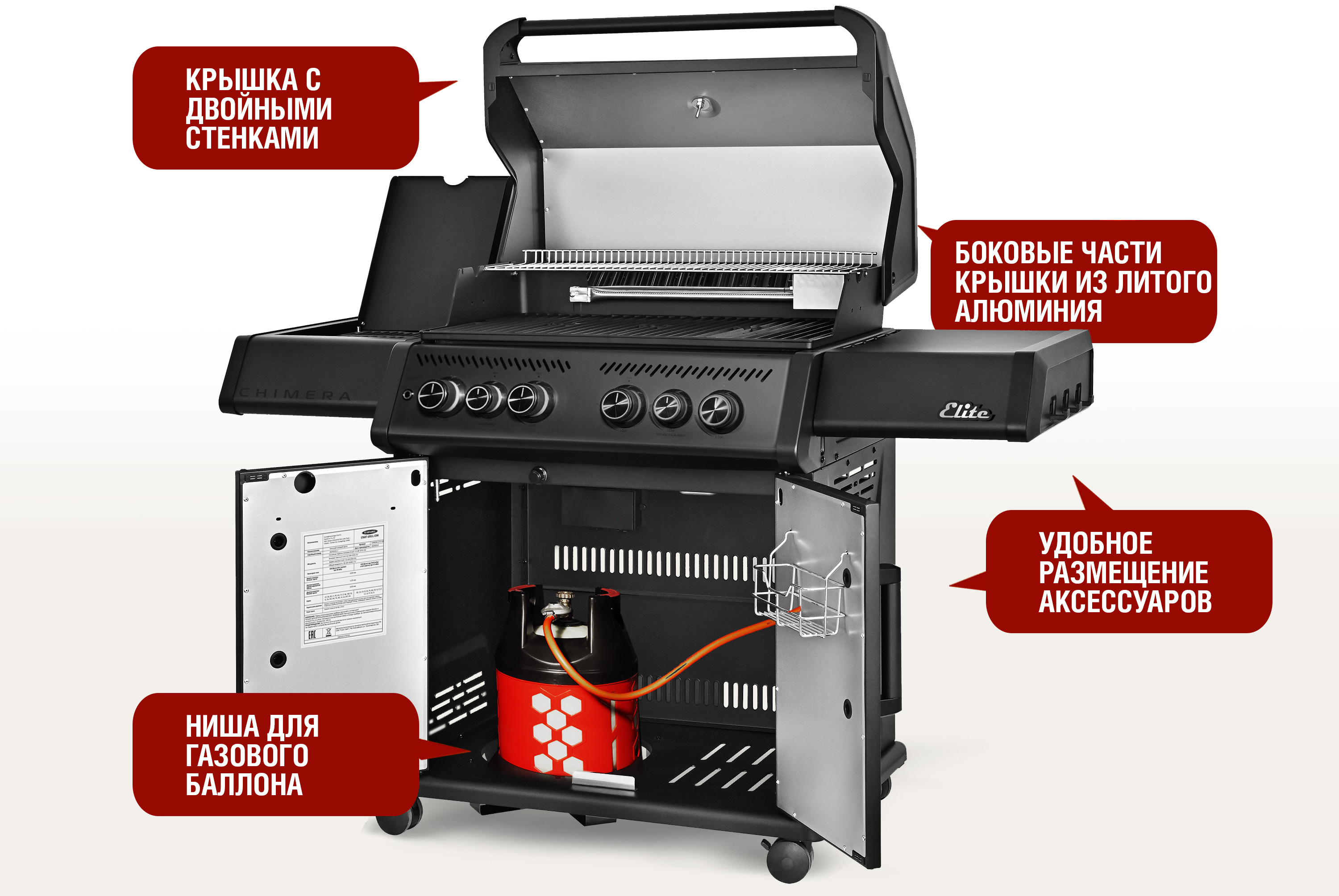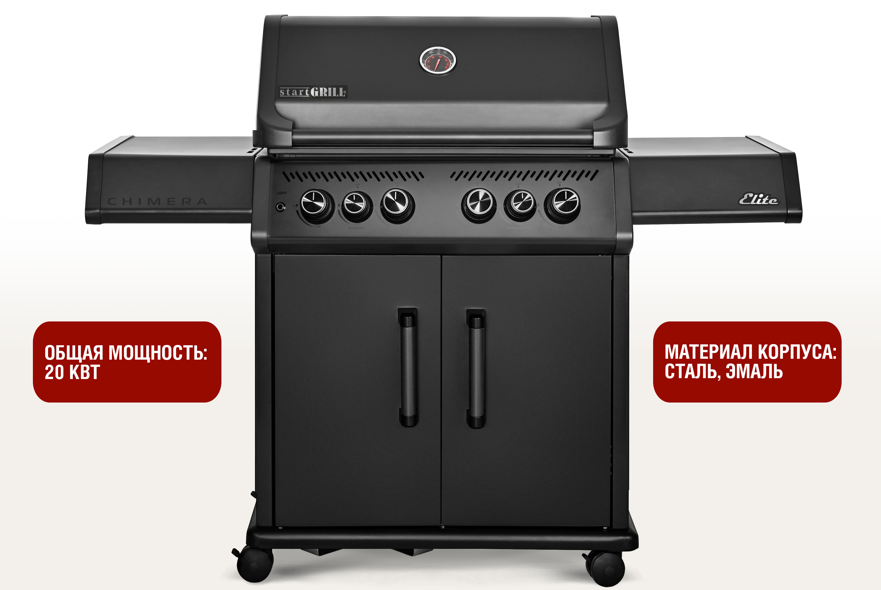 CHIMERA ELITE 500. ПРЕМИАЛЬНЫЙ ПОДХОД К КАЖДОЙ ДЕТАЛИChimera Elite 500 — это профессиональный газовый гриль, созданный для тех, кто ценит качество, удобство и универсальность в приготовлении блюд на открытом воздухе. Благодаря продуманной конструкции и высокотехнологичным решениям, этот гриль станет незаменимым помощником на кухне или террасе.