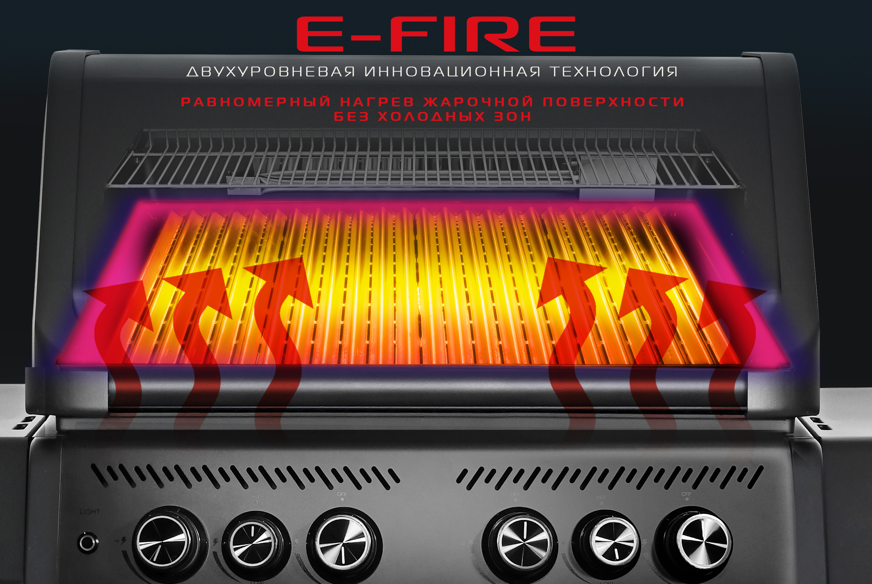 Двухуровневая инновационная технология обеспечивает идеально равномерный нагрев по всей площади гриля, исключая холодные зоны и минимизируя расход газа.