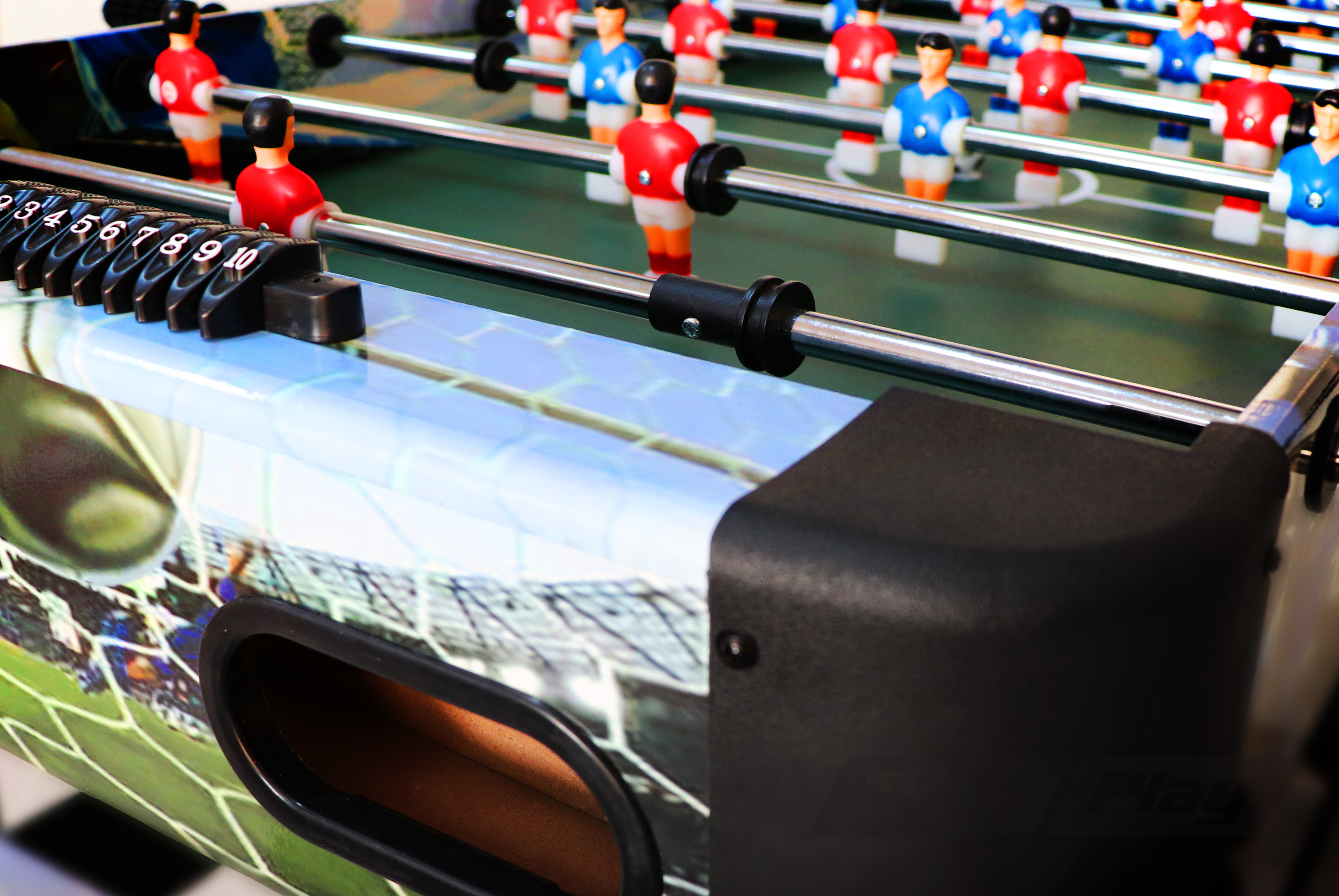 Игровой стол World game от Start Line Play – прекрасный выбор напольного мини-футбола для детей младшего и среднего школьного возраста. Он прекрасно подходит для веселого и интересного времяпровождения. Универсальная модель, которую отличает яркий дизайн, устойчивая конструкция, качество исполнения всех элементов отделки,включая фурнитуру. Углы корпуса закруглены, что повышает безопасность использования мини-футбола детьми. Корпус и опоры стола выполнены из МДФ, выдерживающего высокие нагрузки.Монтаж игрового стола не представляет сложностей. Его легко собрать своими силами. В комплекте поставляется инструкция по сборке, уходу и правила игры.