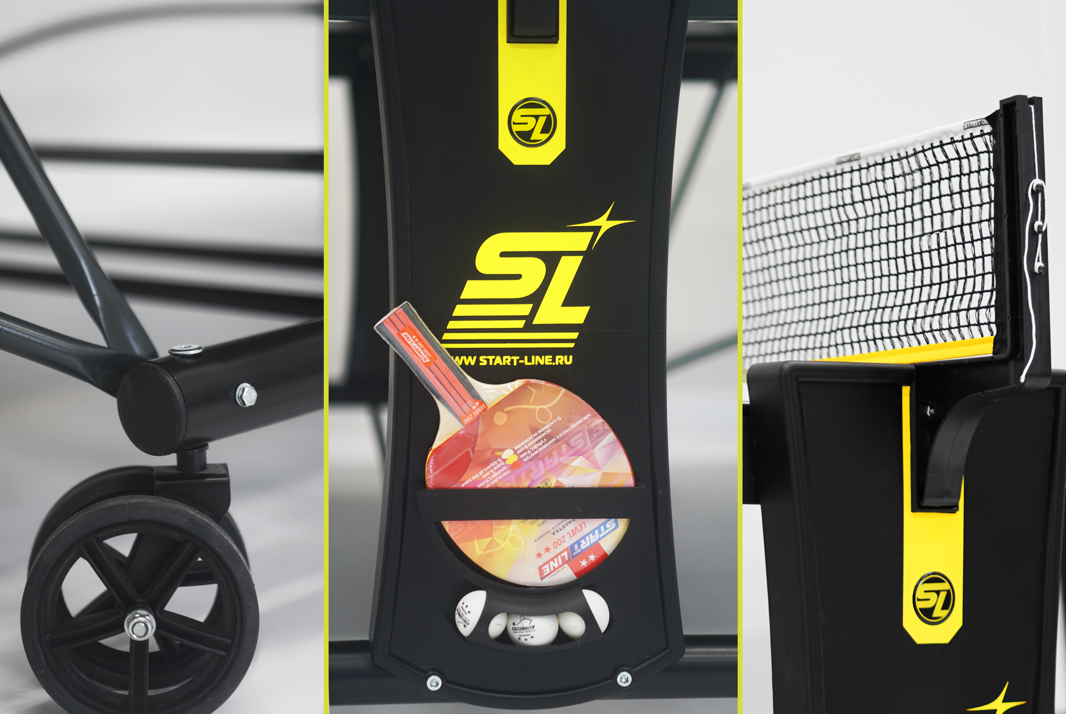 Уникальная система складывания — собственная разработка Start Line. Все манипуляции производятся с рабочего места игрока для каждой из столешниц. Для трансформации стола достаточно усилий одного человека. Усовершенствованный механизм предусматривает специальные фиксаторы, позволяющие надежно закреплять положение стола как в разложенном, так и в сложенном виде, что гарантирует высокую стабильность стола во время хранения и транспортировки.
