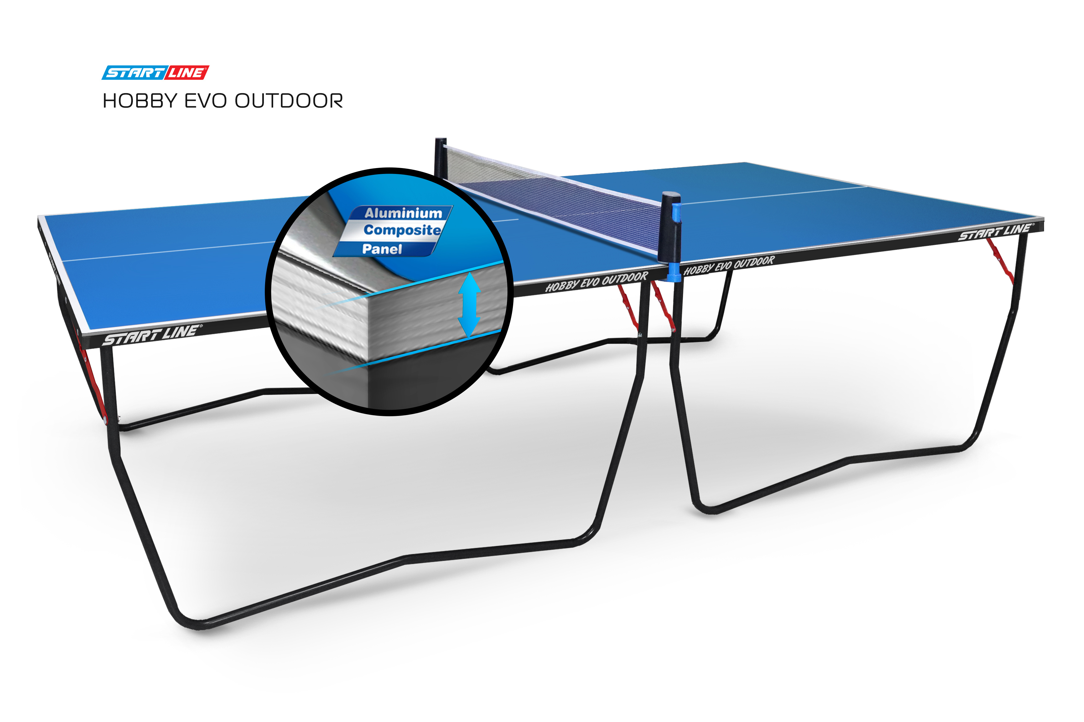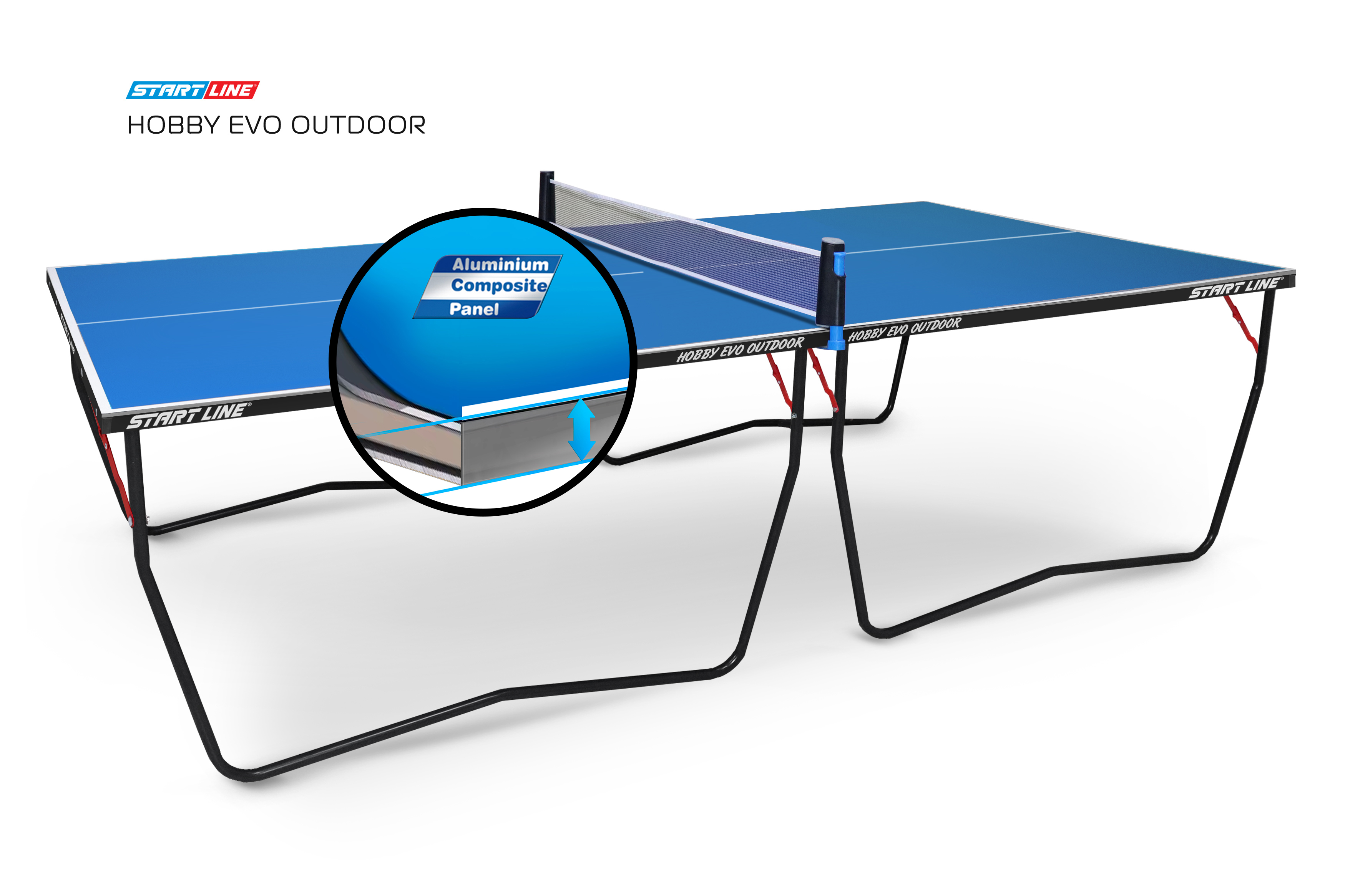 Алюминиевый слой столешницы из АКП 6 мм имеет толщину 0,3 мм. В отличие от конкурентов, у которых толщина алюминиевого слоя составляет всего 0,21 мм, Start Line гарантирует надежную защиту теннисных столов от коррозии и механических повреждений.