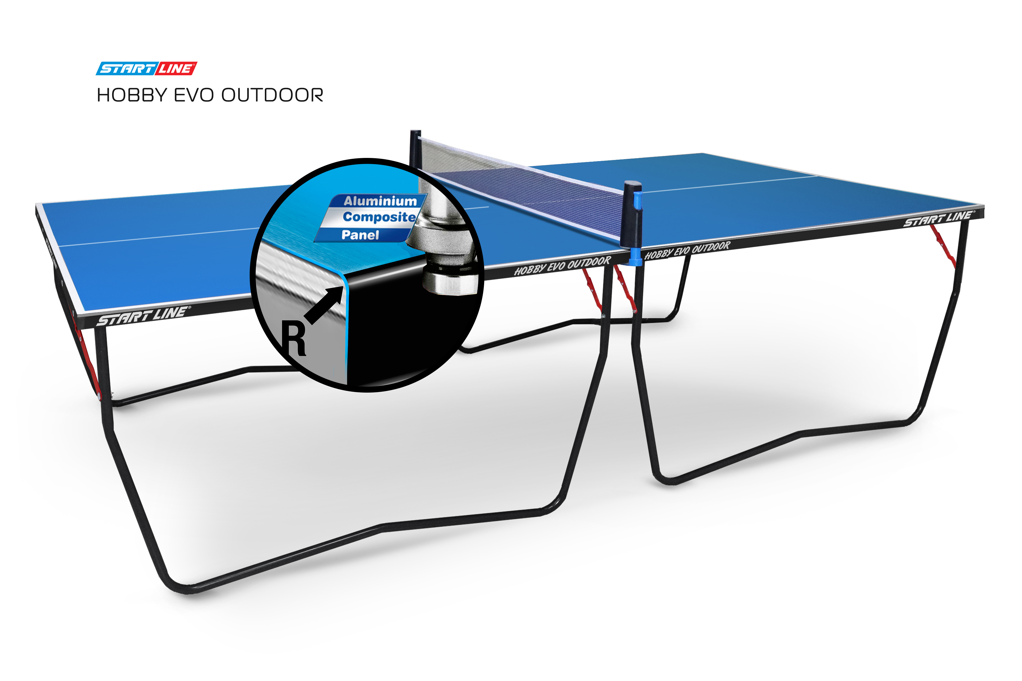 Отличительным качеством модели служит материал игрового поля - это алюминиевая композитная панель толщиной 6 мм, она дает равномерный отскок и обеспечивает отличное сцепление мяча.