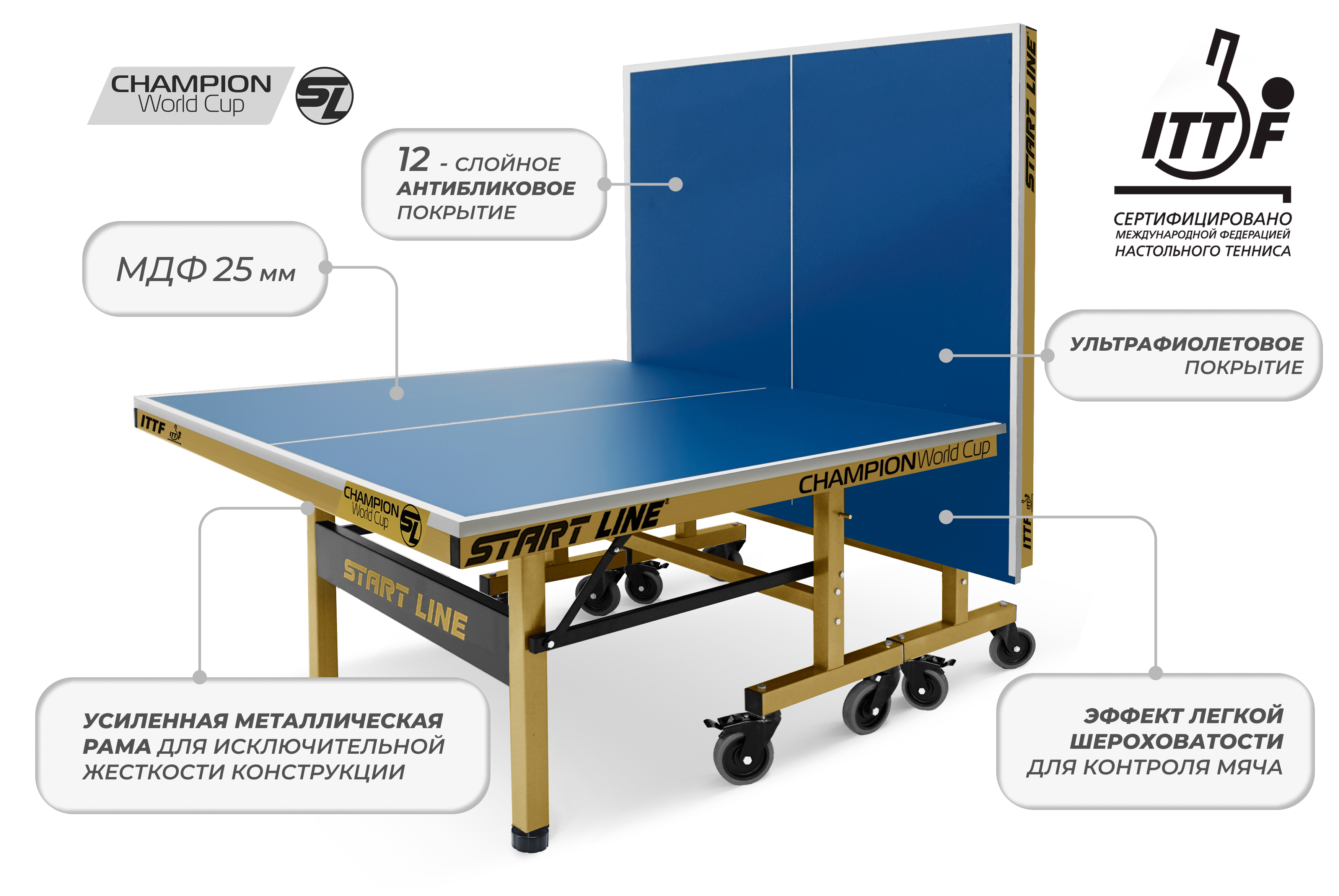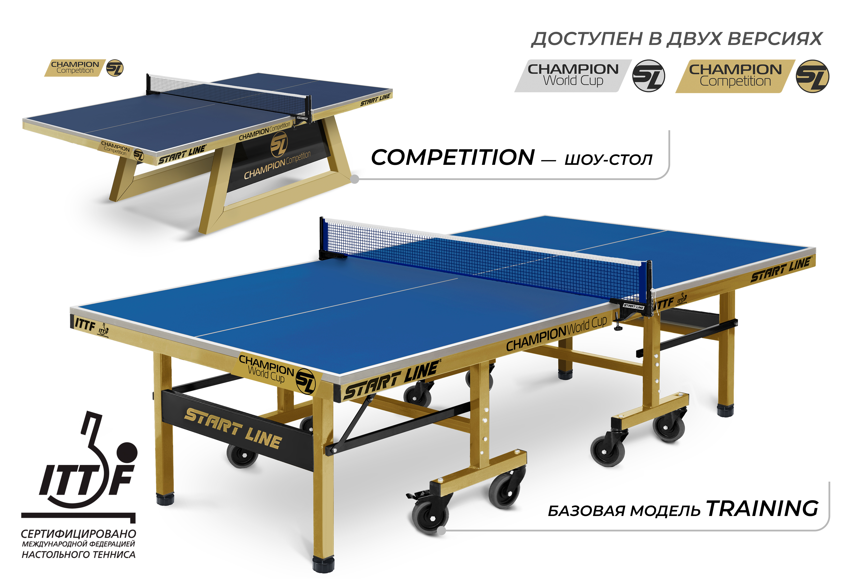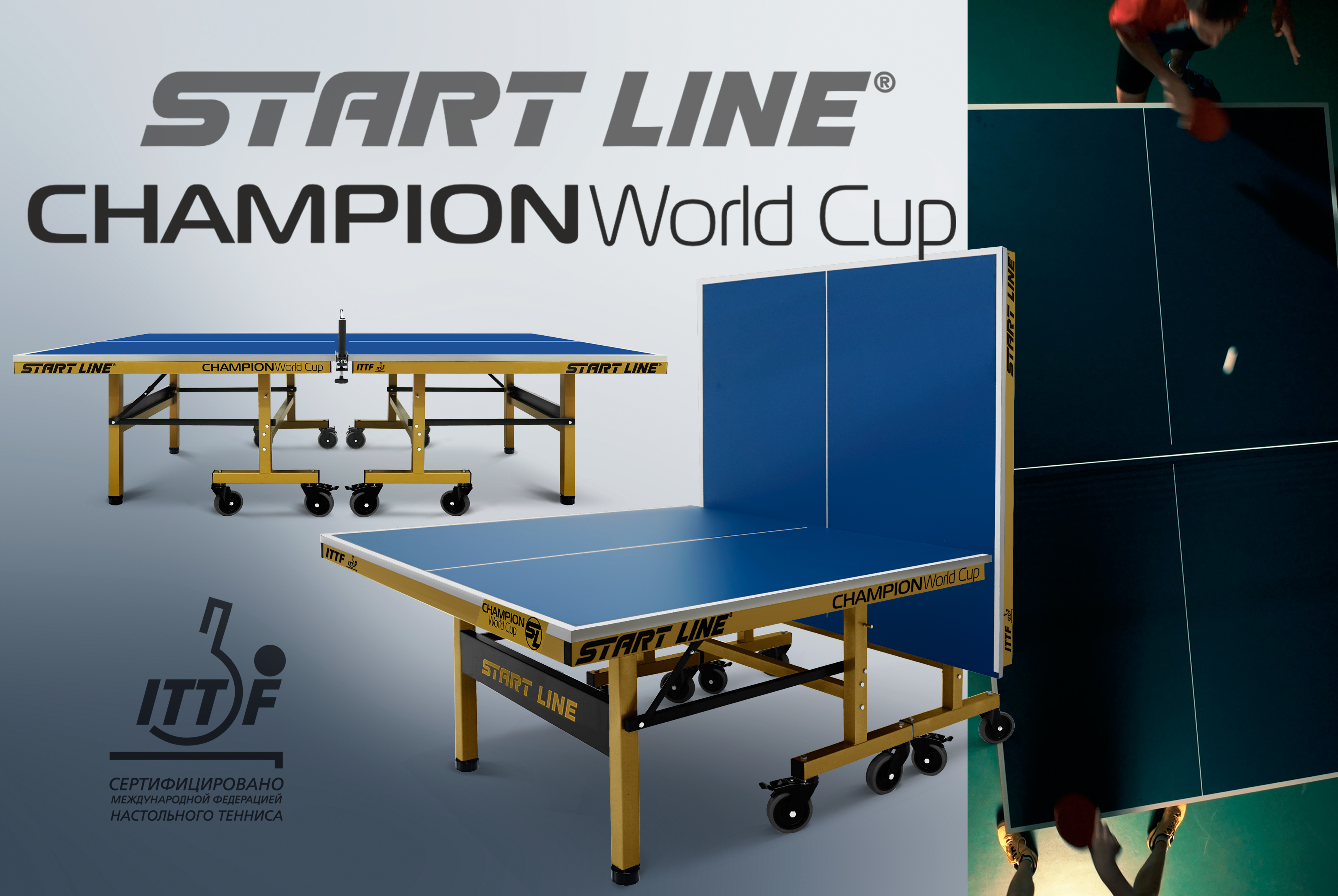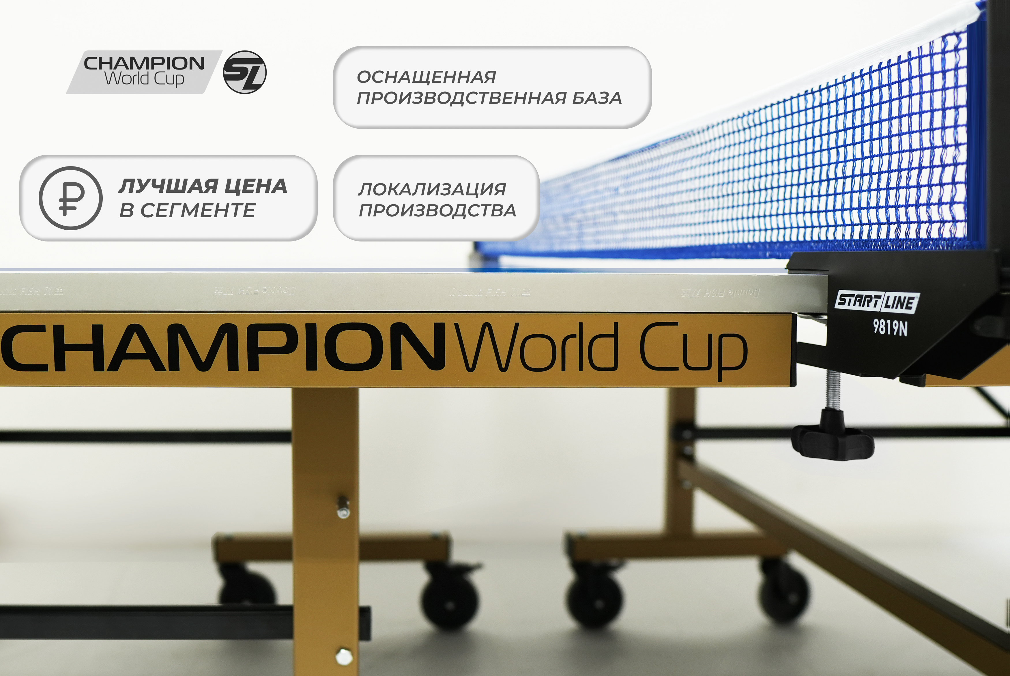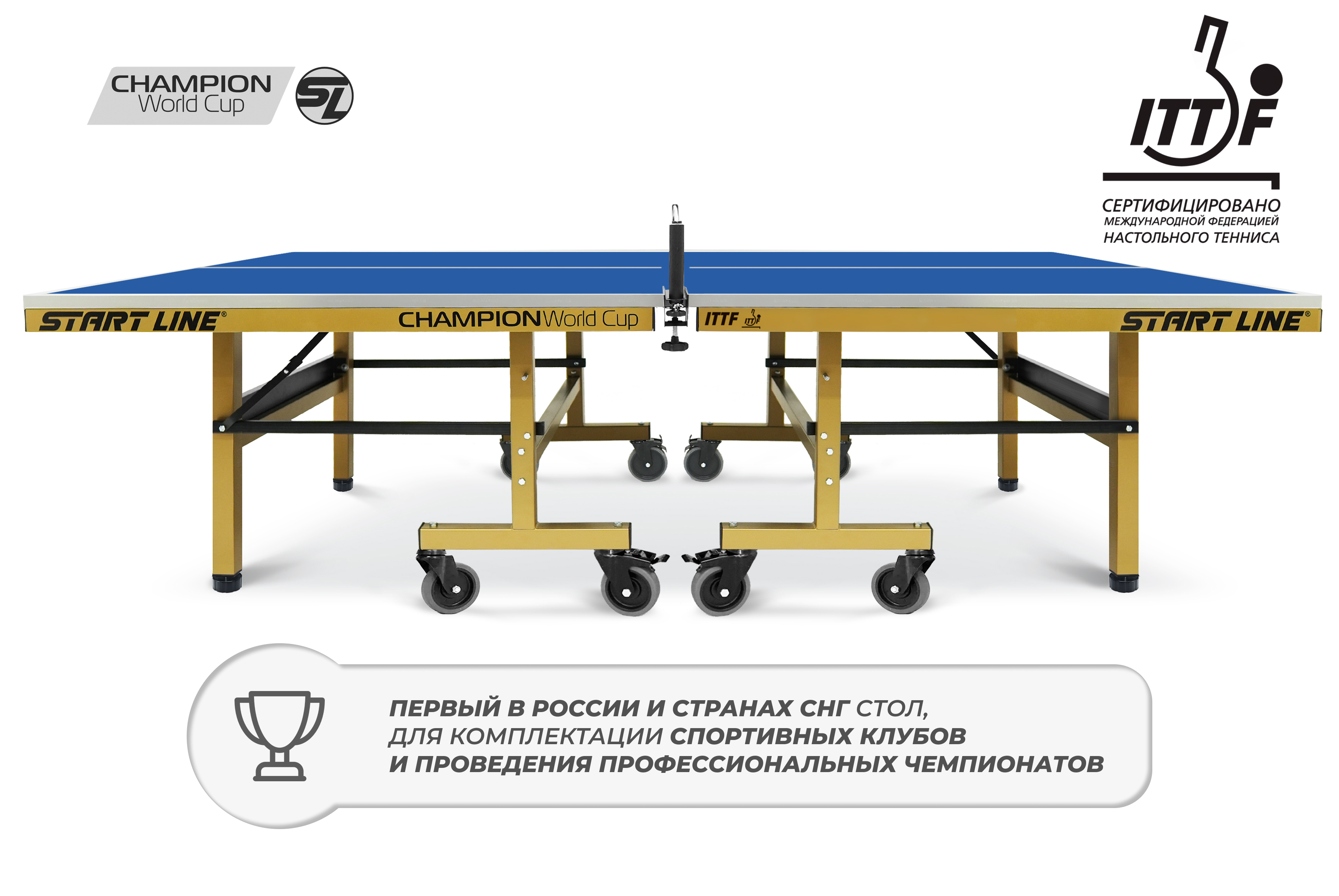 Champion World Cup — это уже сегодня инвентарь наивысшего класса, доступный для оснащения турнирных площадок. Start Line гарантирует не только лучшую цену в своем сегменте, но и постоянное наличие новинки на складе, что позволяет комплектовать объекты в кратчайшие сроки.Теннисный стол Champion World Cup — это выбор чемпионов и разумная инвестиция в будущее вашего спортивного успеха.